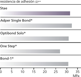 La completa hibridación de la dentina, desmineralizada por la resina Stae, da como resultado grandes fuerzas de adhesión.