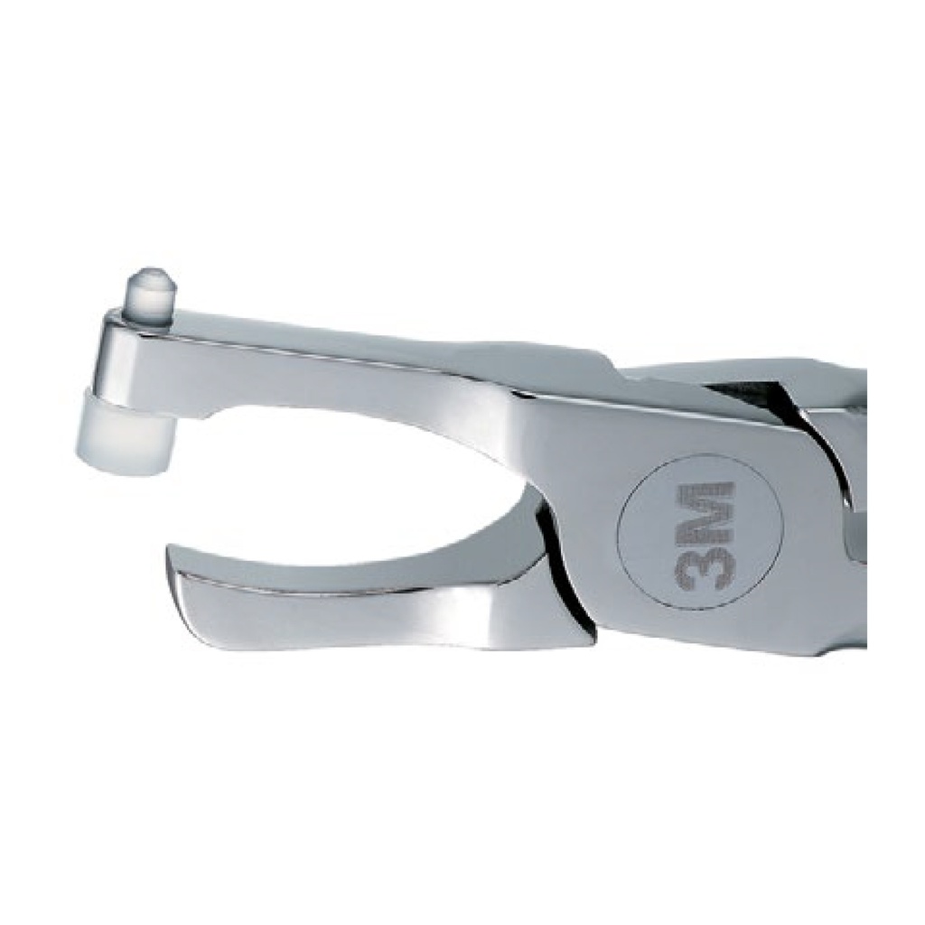 El pico con punta de cincel atrapa el borde gingival de la banda. Contrafuerza oclusal proporcionada por punta acolchada de plástico.